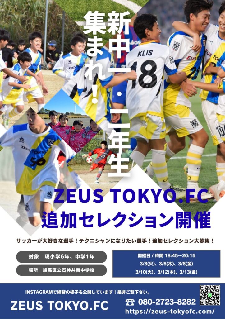 練馬区石神井公園を拠点とする2年目のジュニアユースクラブチーム ZEUS TOKYO.FC